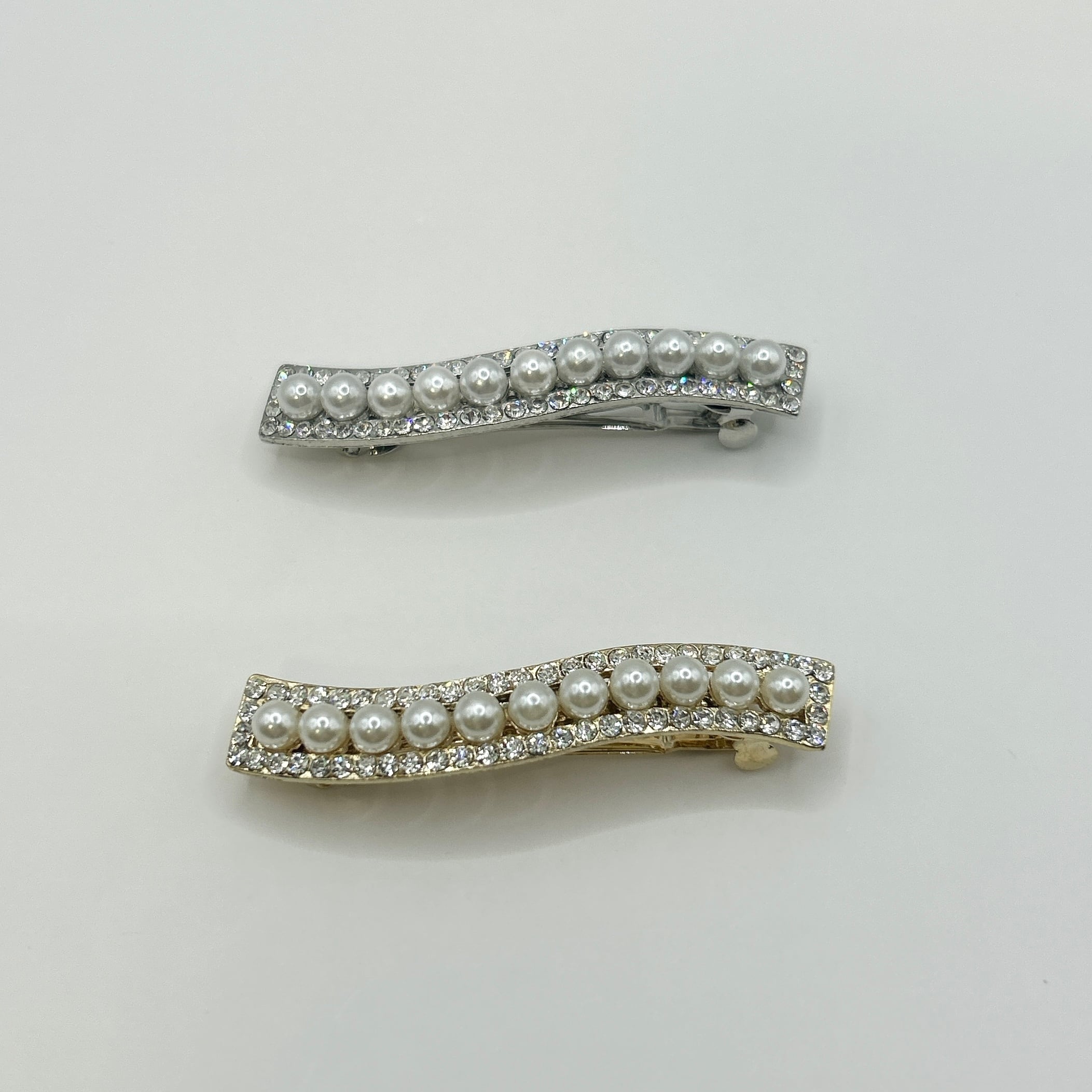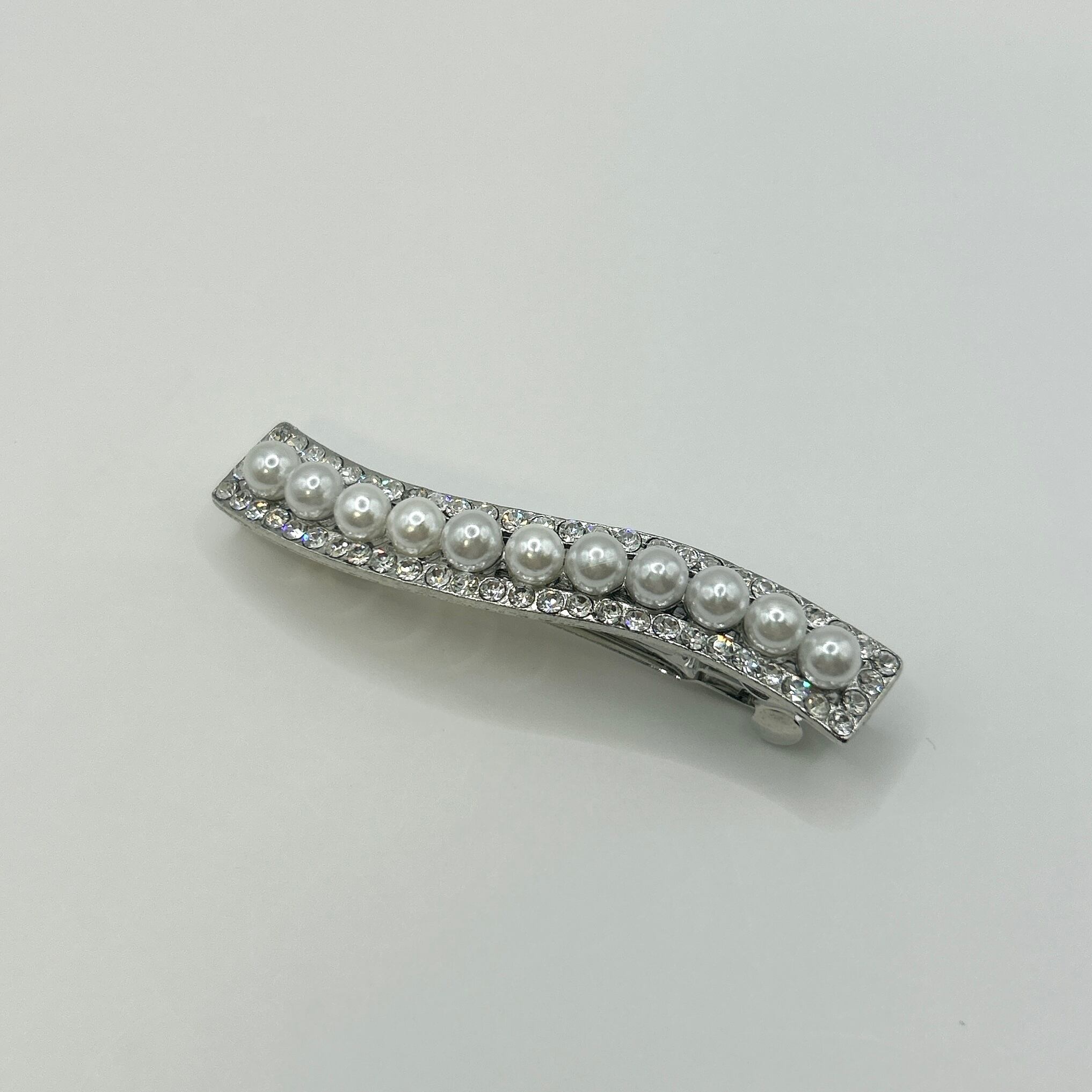華やかなパールときらめくストーンにウェーブのデザインが魅力的なミニサイズのバレッタは、普段使いはもちろん、特別な日のお洒落にもぴったりで、ハーフアップやダウンスタイルにさっとプラスするだけで、目を惹くアクセントを加えることができます♪