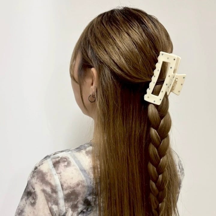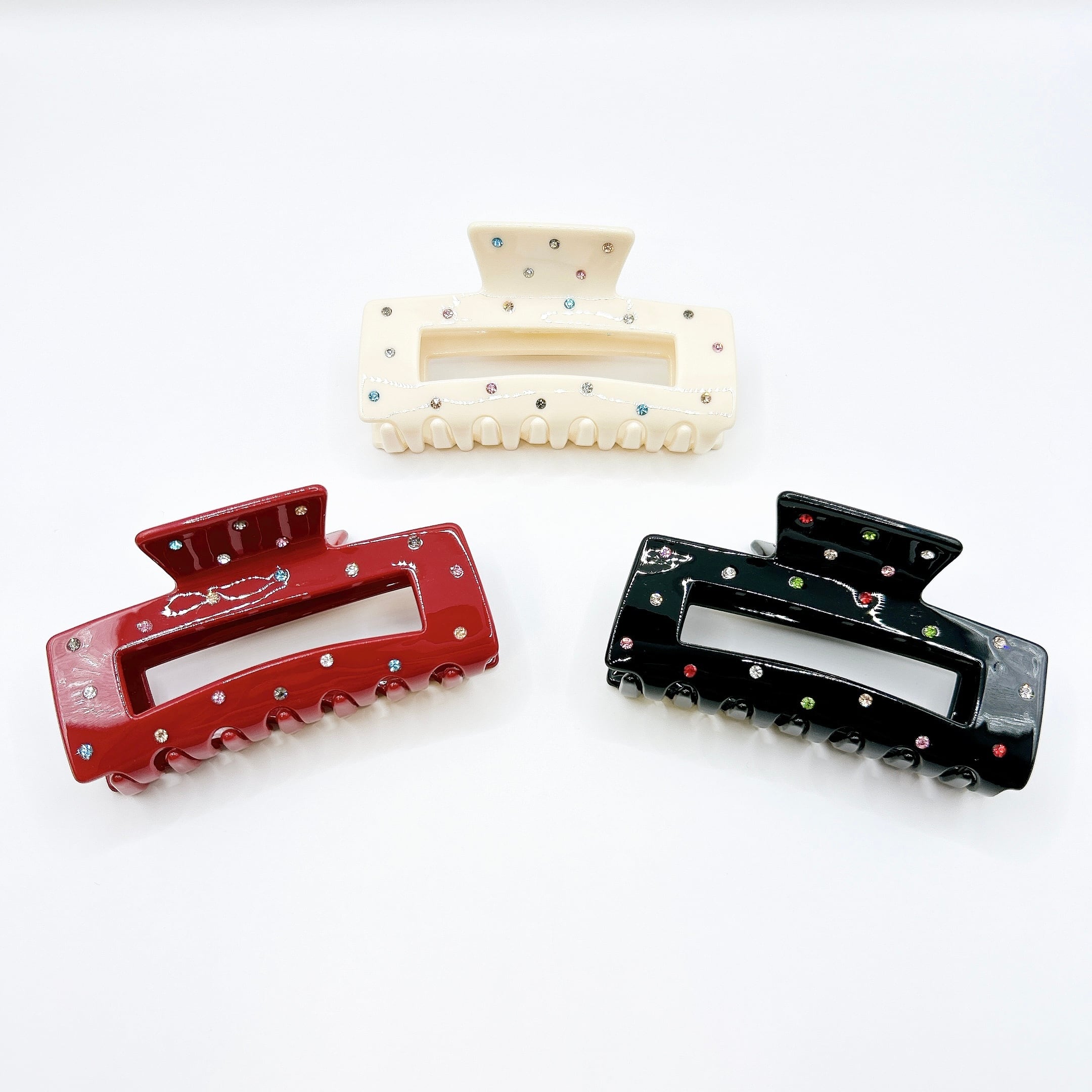 散りばめられたカラフルストーンにスクエアのデザインがスタイリッシュなバンスクリップはエレガントな印象を与えます♫