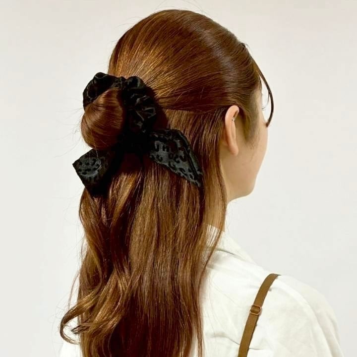 存在感のあるレオパード柄とリボンのデザインが特徴で、髪を優しくまとめるだけでなく、その独特なデザインがスタイルにアクセントを加えてくれます✧*。