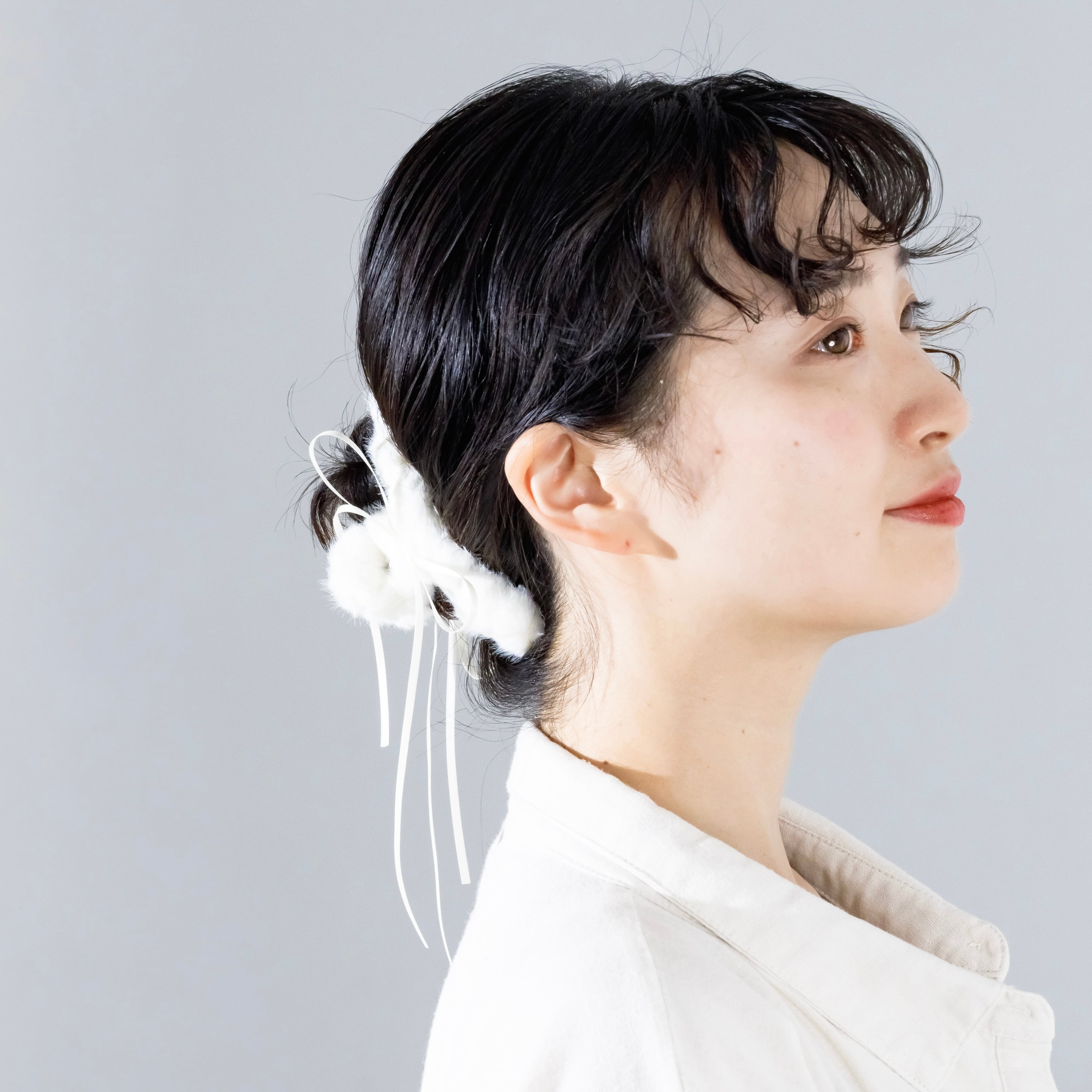 ひもリボン付きファーバンスクリップ