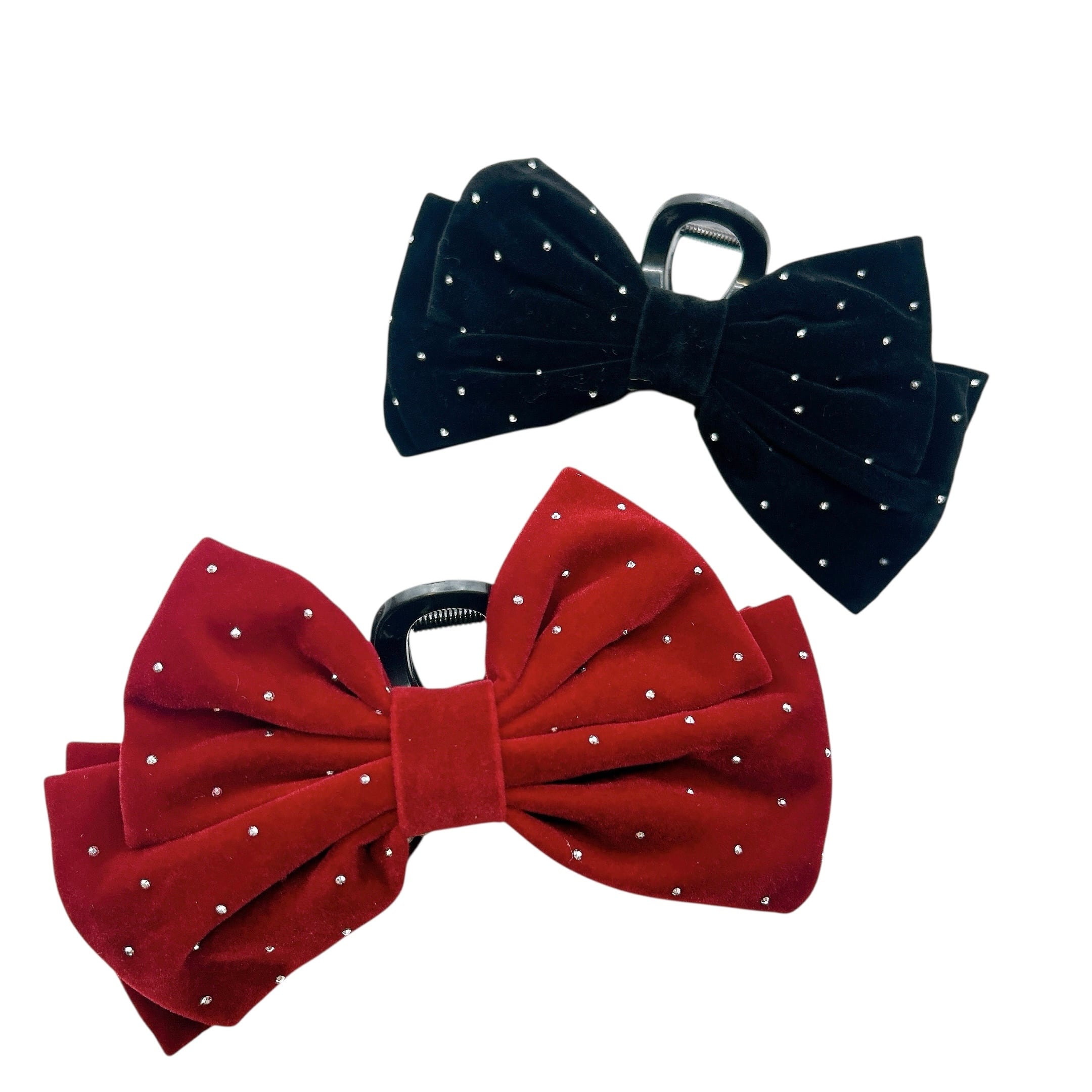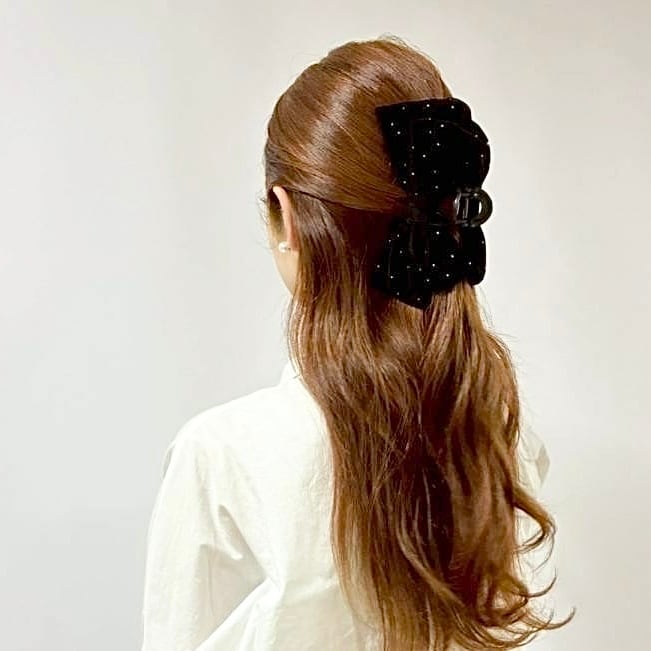 柔らかなベロア素材が女性らしさを引き立て、ドット柄のストーンがアクセントとなり、どんなスタイルにも溶け込みます✧︎*。