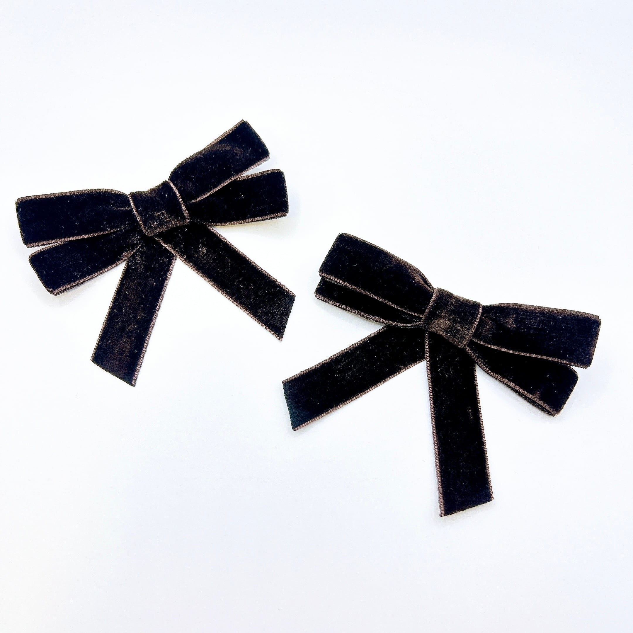上品で光沢感のあるベロアに、リボンは小さめで、同じクリップが2つセットになっているので、左右対称に留めたり、重ねてボリュームを出したりと、様々なアレンジが楽しめます♫