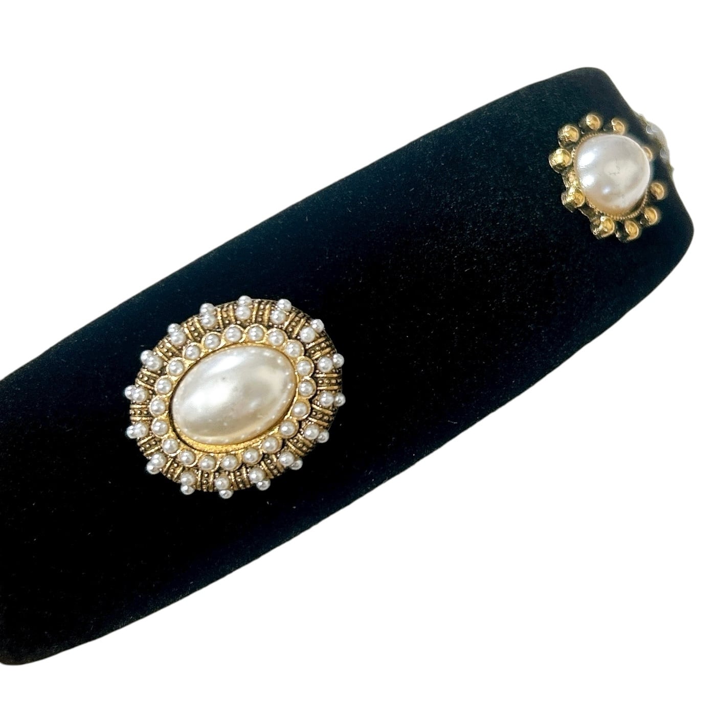 上品ベロア素材に煌めくビジューが施されたカチューシャです♫