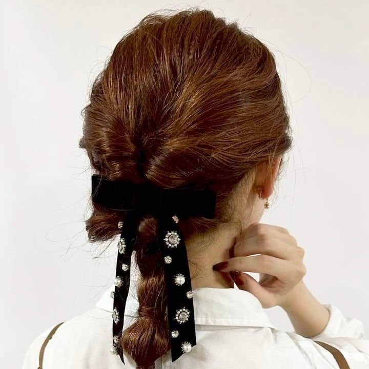 ベロアビジューリボンバレッタ スマート